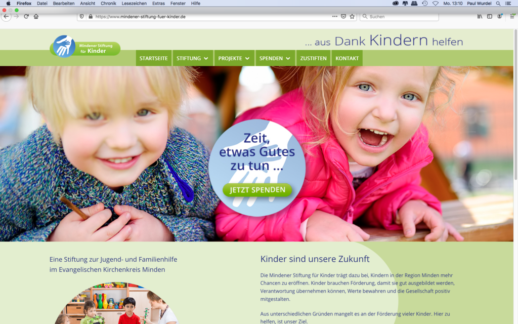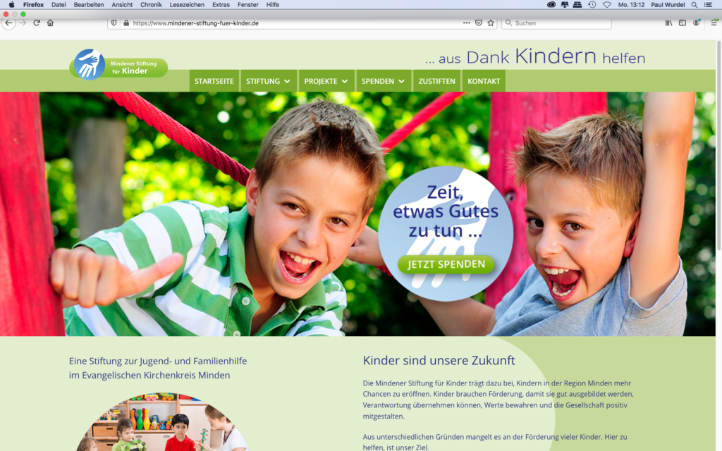 M-Design : Paul Wurdel entwickelte ein komplett neues, zeitgemäßes Re-Design der Website und realisierte in Kooperation mit Uwe Gagelmann, 2werken, die Programmierung sowie die Implementierung eines Online Spenden-Tools.